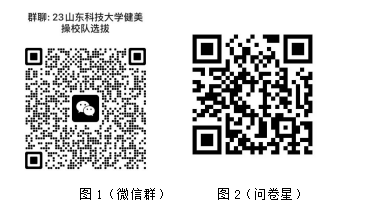 2.报名方式:扫描以下二维码报名。报名提交成功的同学请加入微信群(图一),并填写问卷星-BETVLCTOR伟德官方网站健美操报名信息表(图二)。